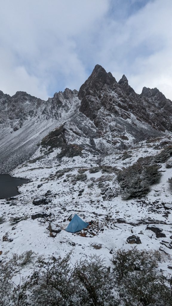 In der Nacht musste ich das Zelt mehrmals nachsichern aufgrund des extremen Windes, viel Schlafen war dadurch nicht.