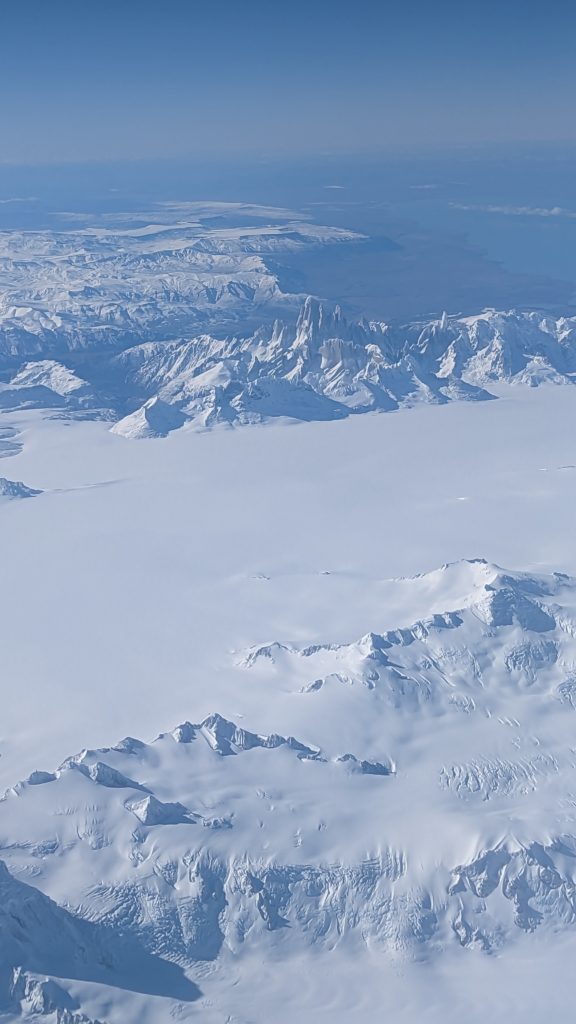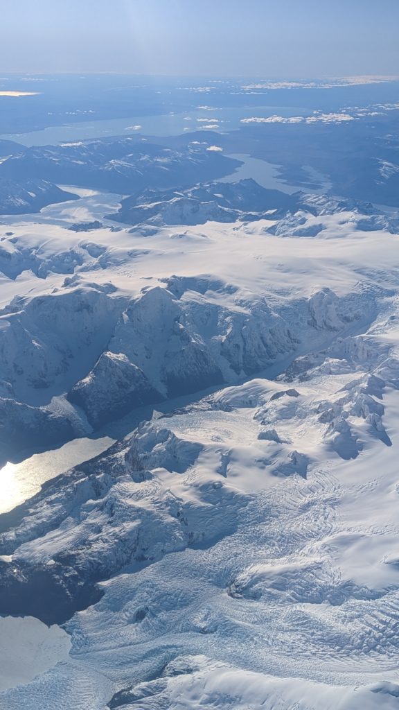 Der Flug von Punta Arenas nach Santiago war klasse, ein richtiger Panoramagflug, durch das gute Wetter hatte man ein fantastischen Blick auf die Anden, aber auch Torres del Paine, der Perito Moreno Gletscher, der Fitzroy und sogar und in Ferne der Aconcagua waren zu sehen.