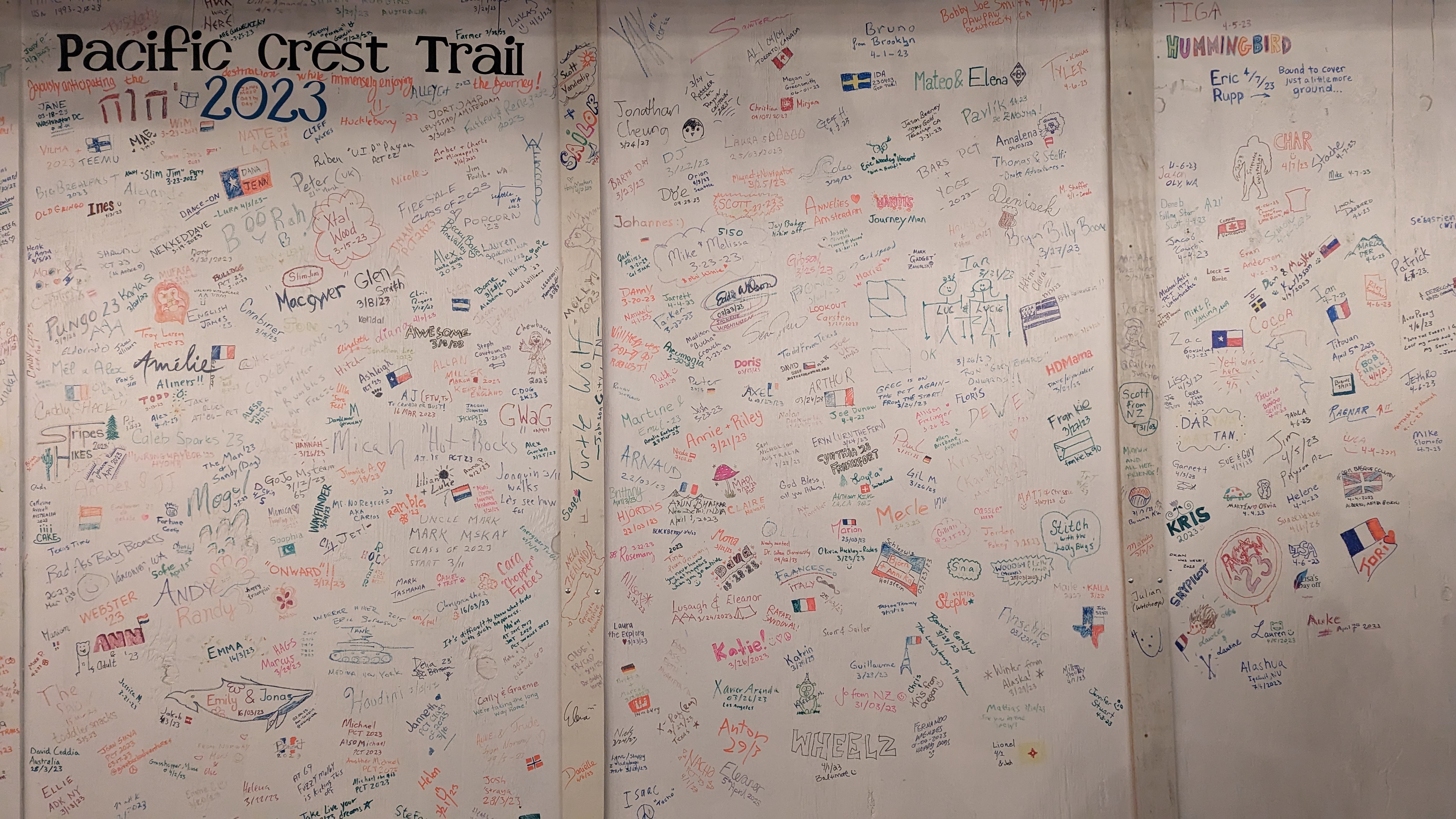 Ofiziell starten 50 Truhiker am Tag, es gibt aber zusätzlich noch ein paar die auch nur Teilstrecken laufen.Die Hiker kommen überall her, natürlich viele Amerikaner auch aus Kalifornien oder Washington, also nicht weit weg vom Weg, aber auch mehrere Australier, Franzosen, Britten, Niederländer und Deutsche habe ich bislang getroffen.