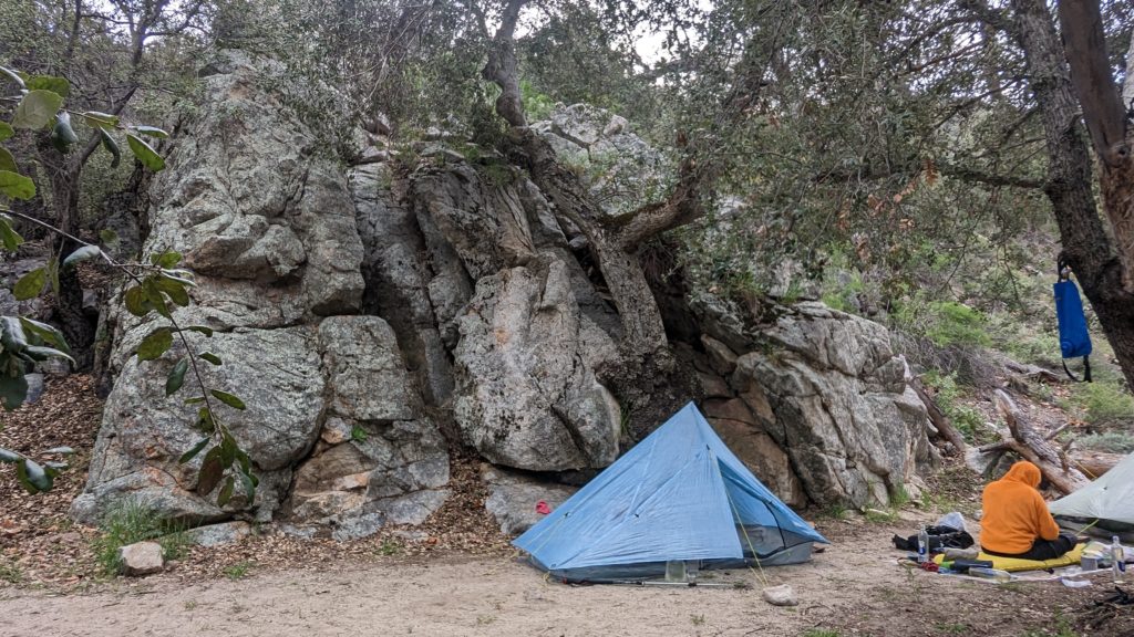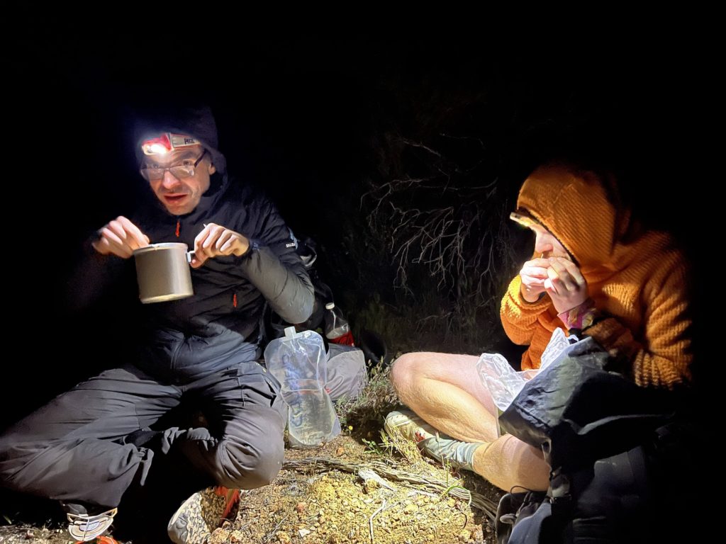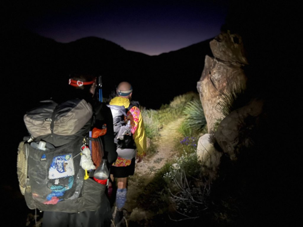 Daher sind wir auch am 12.04.23 vom Campingplatz auf Meile 116 wieder ca. 27 Meilen gegangen, so dass wir dann bei Meile 143 unsere Zelte aufgeschlagen haben, nachdem wir wieder ca. 3 Stunden mit Kopflampe durch die Nacht gewandert sind, inkl. Abendessen auf dem Weg.