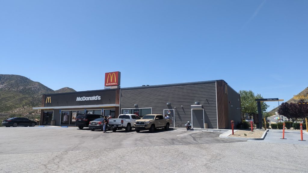 Am 25.04.23 sind wir zunächst zum berühmten PCT McDonald’s an der Interstate 10 gegangen. Die Auswahl dort war allerdings enttäuschend, weder Salat noch vegetarische Burger waren im Angebot, so dass ich hier nur einen Milchshake hatte.
