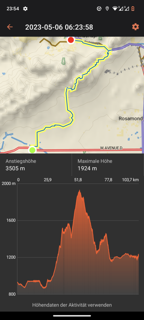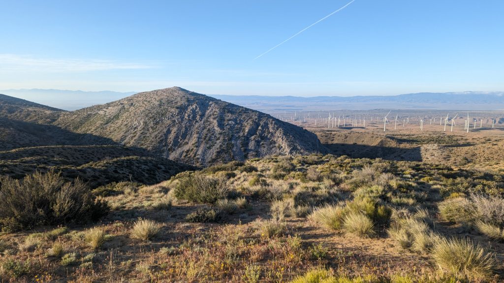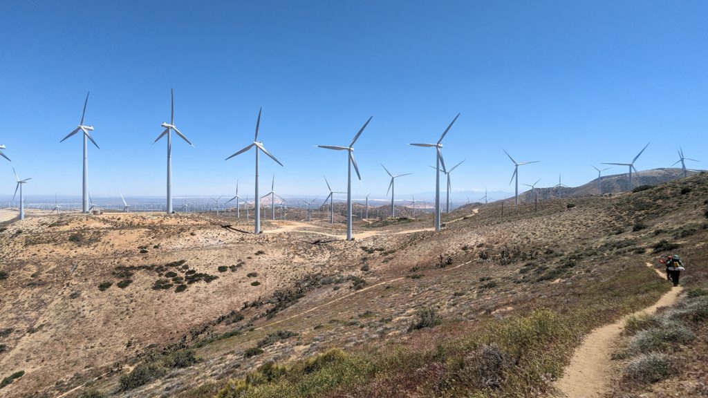 Heute am 07.05.23 wanderten wir dann von dort über mehrere Bergrücken in ein sehr windiges Tal voller Windräder bis zum Highway, wo wir dann vom Trailangel Debie nach Tehachapi gebracht worden.