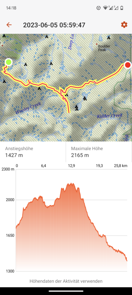 Heute machen wir einen Zero-Day, um unter anderem die nächsten Wochen zu planen. Morgen laufen wir zunächst die 10 Meilen wieder zum PCT-Trailhead die Straße hoch, Thema “ Continuous Path“, und dann noch so weit wir am Tag kommen.
