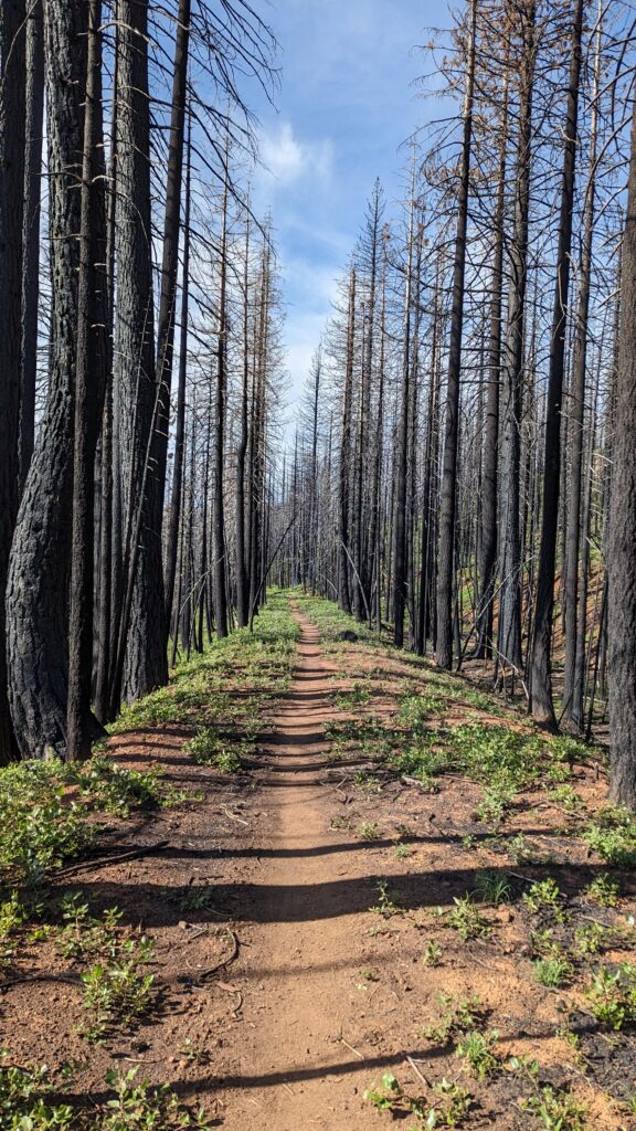 - 21.06.23 Durch den Lassen National Park mit viel verbrannten Wald. Unserer zweiter 30 Mile- Day auf dem PCT.