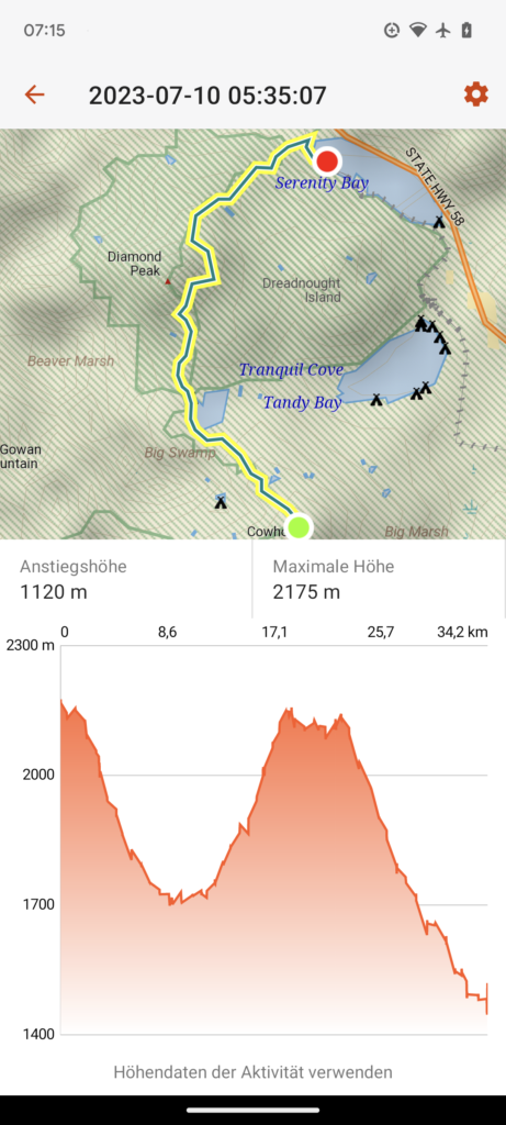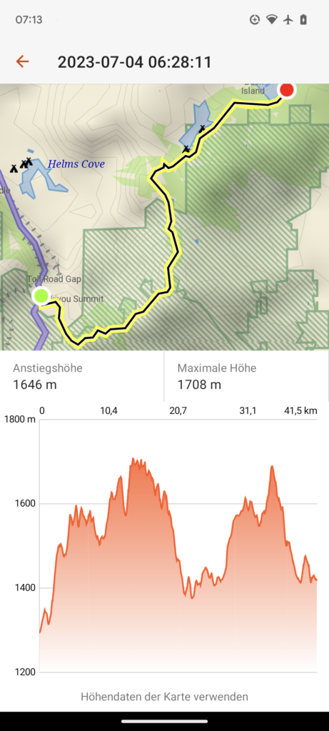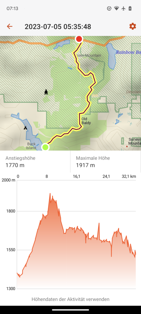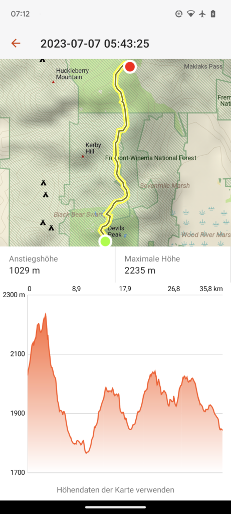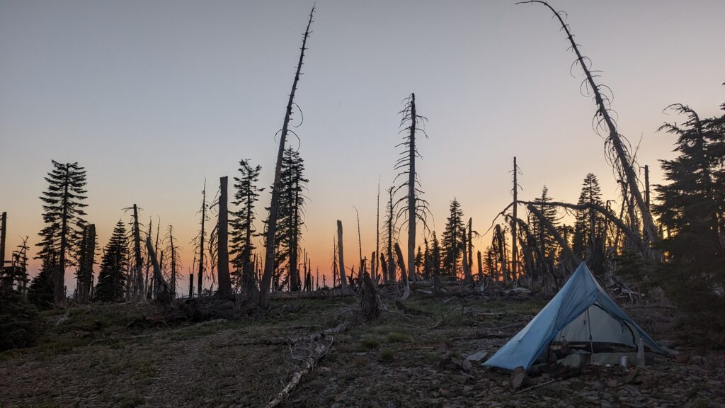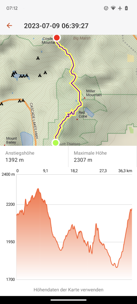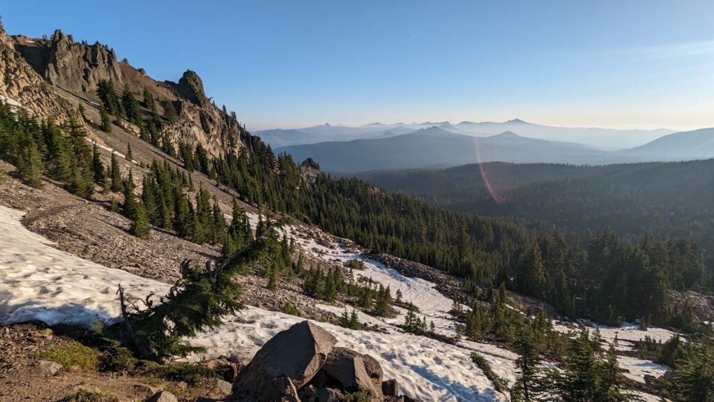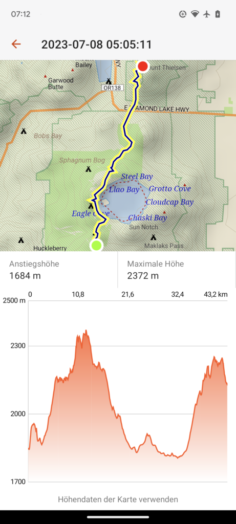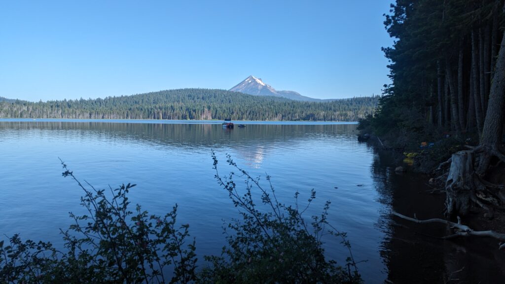 Die ersten beiden Tage (33 und 23 Meilen), also am 04.07.23 und 05.07.23 ging es schnell zum Lake of the Woods. Hier habe ich mich mit Quaking Leaf und seiner Tochter DigDug getroffen. Sie sind aufgrund der Schneeverhältnisse doch in Ashland gestartet, so dass ich sie schnell einholen konnte. Wir hatten einen sehr schönen Abend mit einen sehr guten Abendessen und einen schönen Morgen mit einem guten Frühstück. Wir sind dann gemeinsam wieder zum Trailhead getrampt, dann bin ich aber alleine weiter, da mein Zeitplan ein anderer ist.