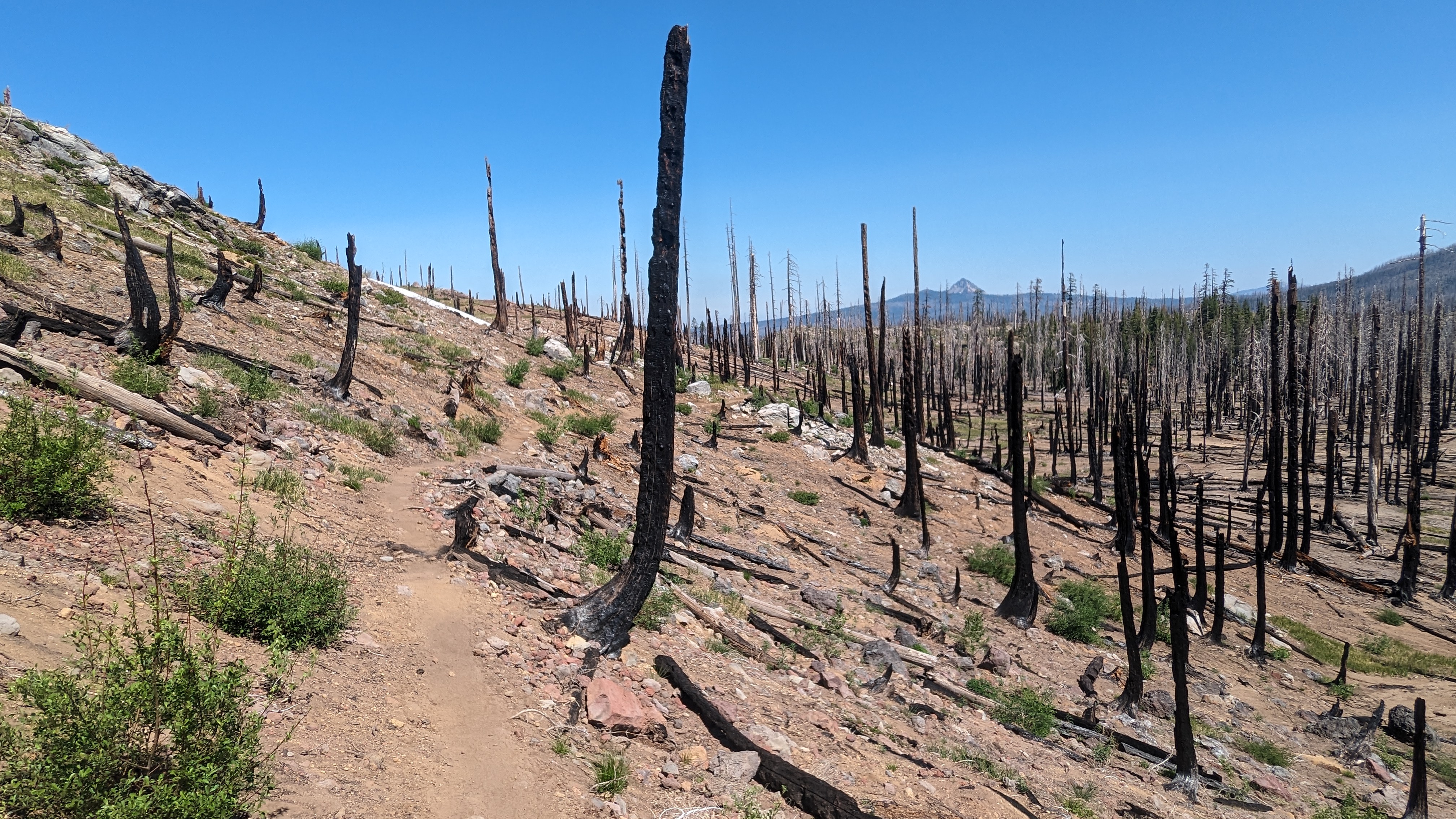 Durch Oregon wird oft sehr schnell gegangen, es gibt sogar eine Oregon Challenge, durch ganz Oregon in 14 Tagen gehen. Der Grund ist normalerweise, dass Oregon der einfachste Teil des PCT ist, ein anderer Grund dafür könnten aber auch die vielen Moskitos sein, welche an vielen Stellen dafür sorgten, dass man keine wirklichen Pause machen kann, da man dann sofort von etlichen Mücken attackiert wird. Auch Abends am Campingplatz ist das sehr nervig. Als Folge habe ich nun dutzende Stiche am ganzen Körper.