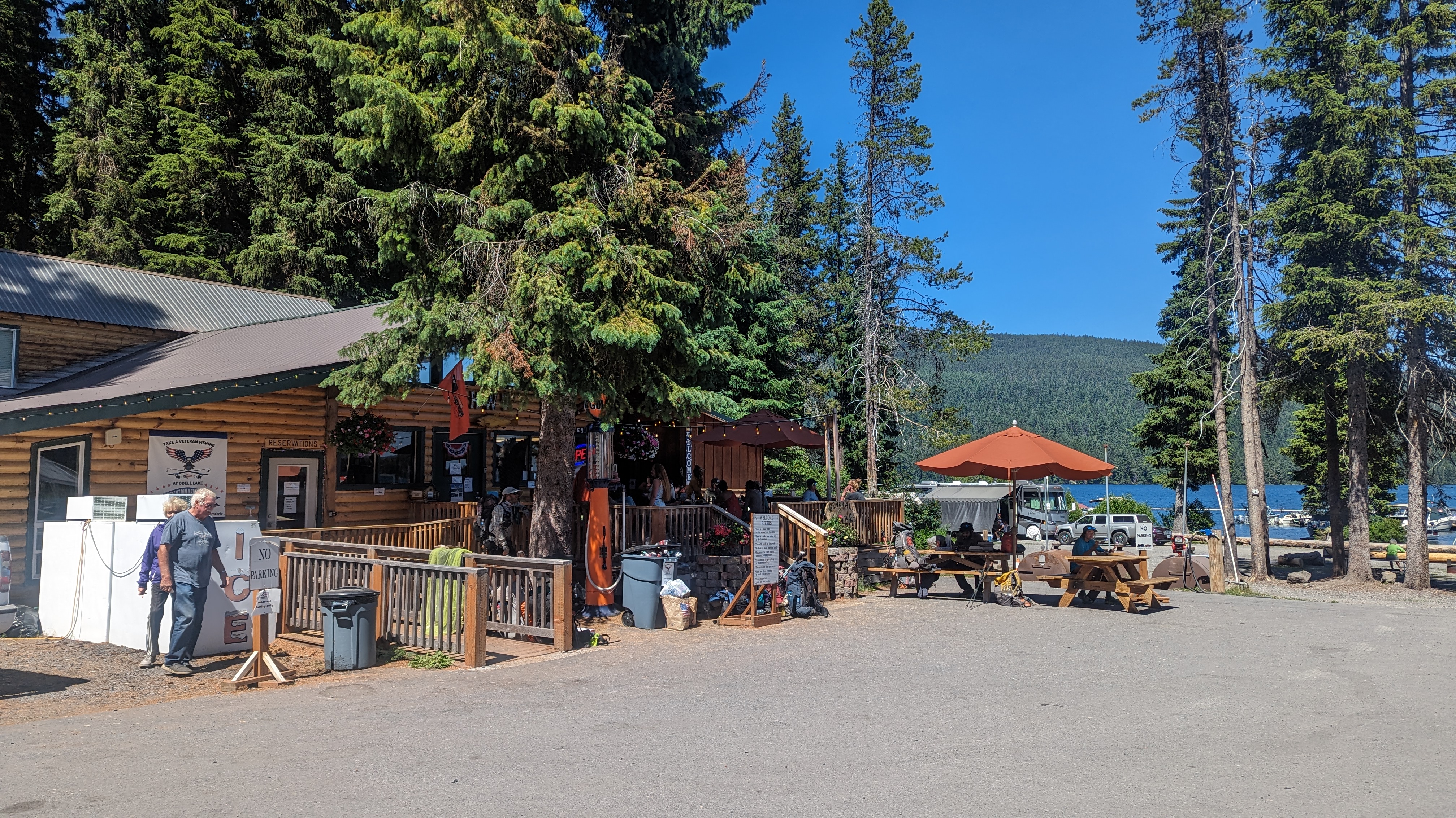 In den letzten 3 Tagen bin ich schließlich dann nach Shelter Cove Resort am Odell Lake gelaufen, da hier ein Resupply nötig ist. Die Auswahl ist hier aber sehr beschränkt und es ist sehr teuer, so dass die nächsten Tage sparsame Kost angesagt ist. Zum Glück kann man unterwegs mindestens zweimal richtig Abendessen.