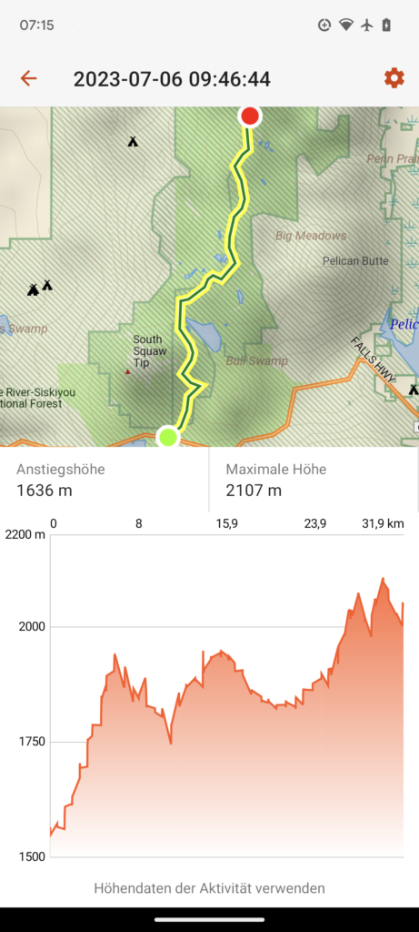 Am 04.07.23 am frühen Morgen am Trailhead südlich von Ashland, dort wo wir am 30.05.23 auch abgesetzt worden und dann südlich gingen, bin ich diesmal in die andere Richtung, nördlich, wieder in Richtung kanadische Grenze, gestartet.